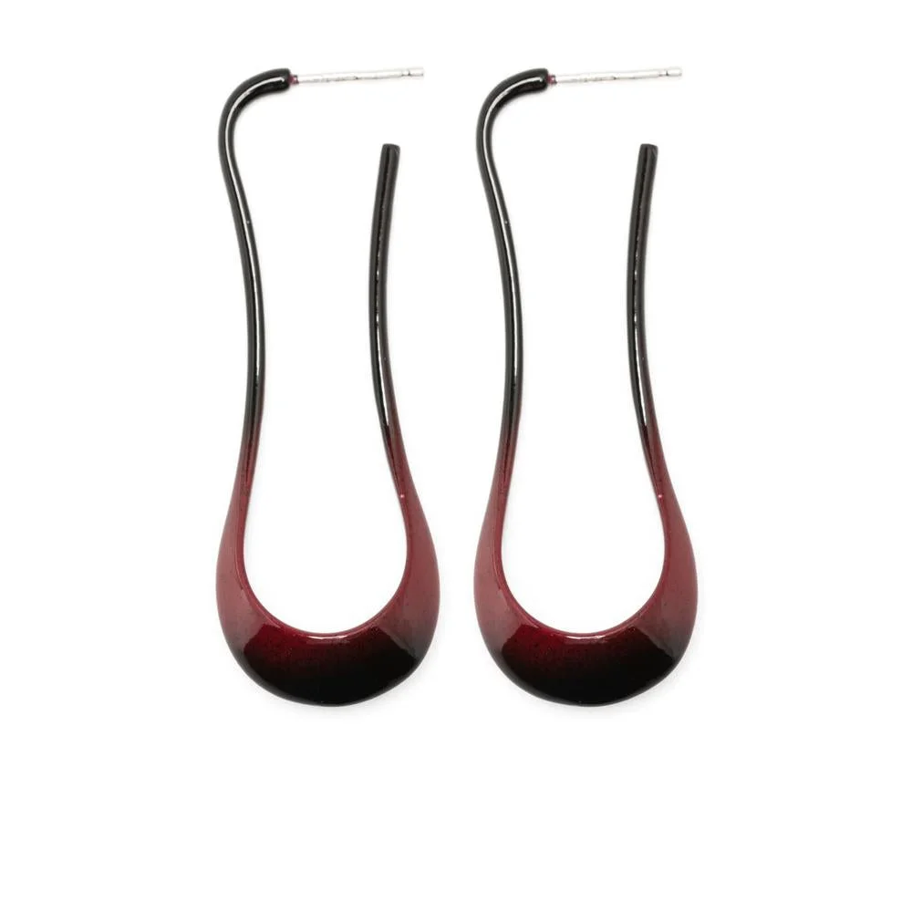 Dark red curved design open hoop post fastening polished finish these earrings come as a pair. Dimension: height: 4.7 centimetres Gender: Women Material: ACRYLIC: 100.0% Color: SILVER Made in: Spain Product ID: AC251 L00114 PU243 *Import tax/duty will be calculated at checkout (If applicable)