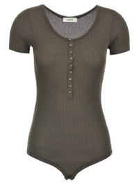 Ribbed viscose and stretch silk blend bodysuit with round neckline, short sleeves, front button closure, snap buttons on the hem Gender: Women Material: 88% VISCOSE, 12% SILK Color: BROWN Made in: FR Product ID: TO1324LK1017BR449 *Import tax/duty will be calculated at checkout (If applicable)