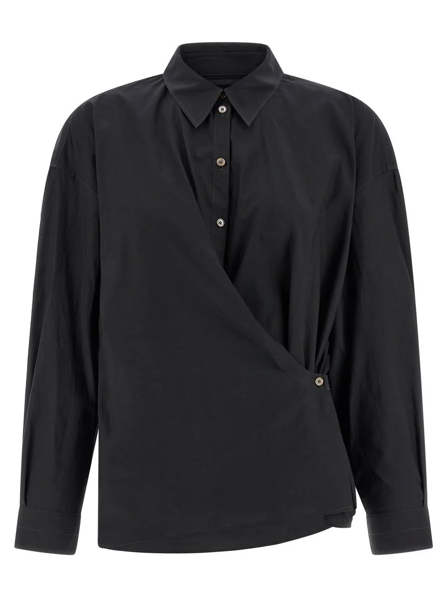 'Straight Collar Twisted' cotton and silk wallet shirt with front asymmetric button closure and long cuffed sleeves Gender: Women Material: 80% COTTON, 20% SILK Color: Black Made in: Portugal Product ID: SH1141LF1500BK998 *Import tax/duty will be calculated at checkout (If applicable)