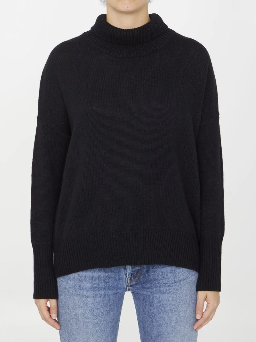 Black cashmere sweater. Features a high neck, ribbed cuffs and hem, with a longer back. Comfortable fit. The model is 176 cm tall and wears size 01 US. Size nationality: US Gender: Women Material: 100% CASHMERE Color: Black Made in: Imported Product ID: 4522712 202113 BL *Import tax/duty will be calculated at checkout (If applicable)