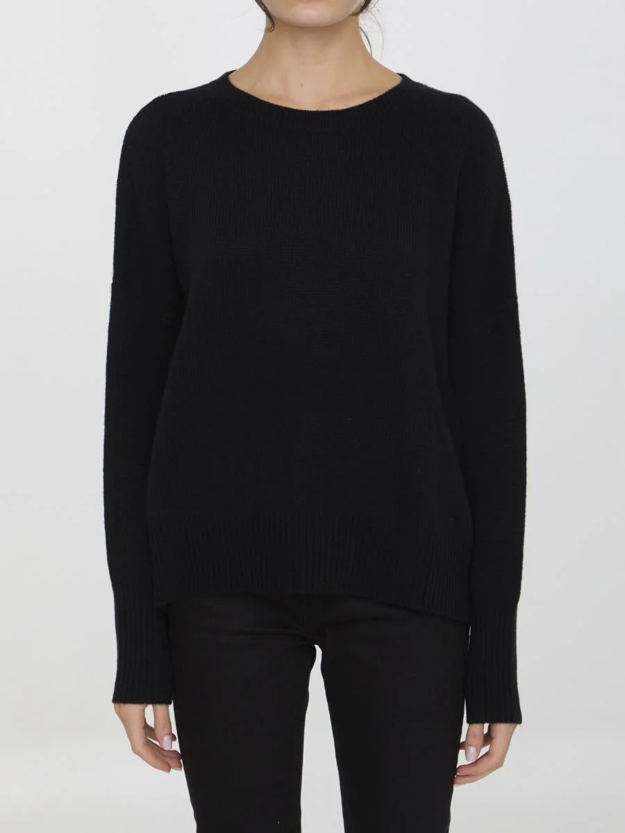 Black cashmere sweater. Features a crew neck, ribbed hem and cuffs, with a longer back. Comfortable fit. The model is 176 cm tall and wears size 01 US. Size nationality: US Gender: Women Material: 100% CASHMERE Color: Black Made in: Imported Product ID: 1677165 201726 BL *Import tax/duty will be calculated at checkout (If applicable)
