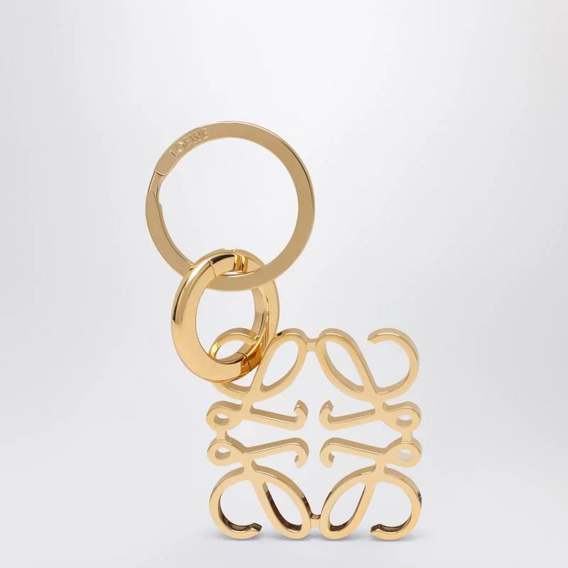 Loewe keychain in gold-plated brass with Anagram logo and logoed ring. Gender: Women Material: 100% Brass Color: METAL Made in: Spain Product ID: 111.25.203PR/R_LOEW-8130 *Import tax/duty will be calculated at checkout (If applicable)