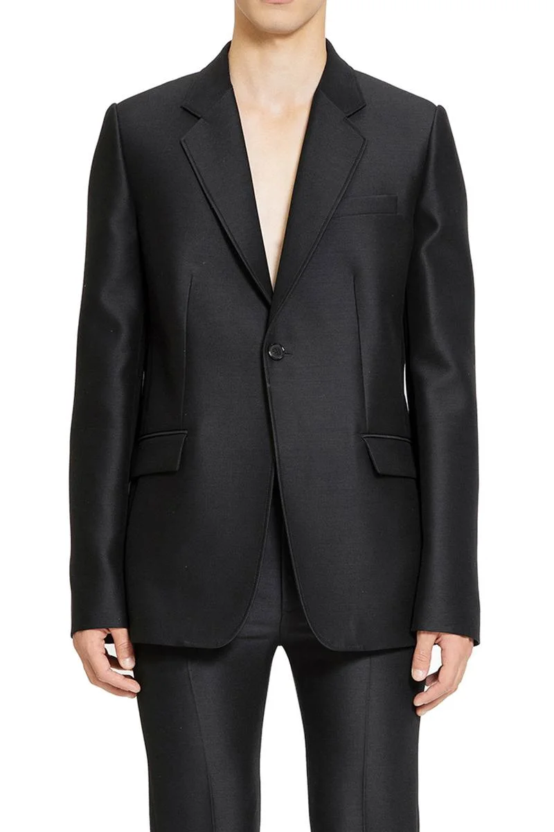 JACKET Gender: Men Material: 82% WOOL 13% SILK 5% POLYESTER Color: Black Made in: Italy Product ID: H526Y03WBR 1100 *Import tax/duty will be calculated at checkout (If applicable)
