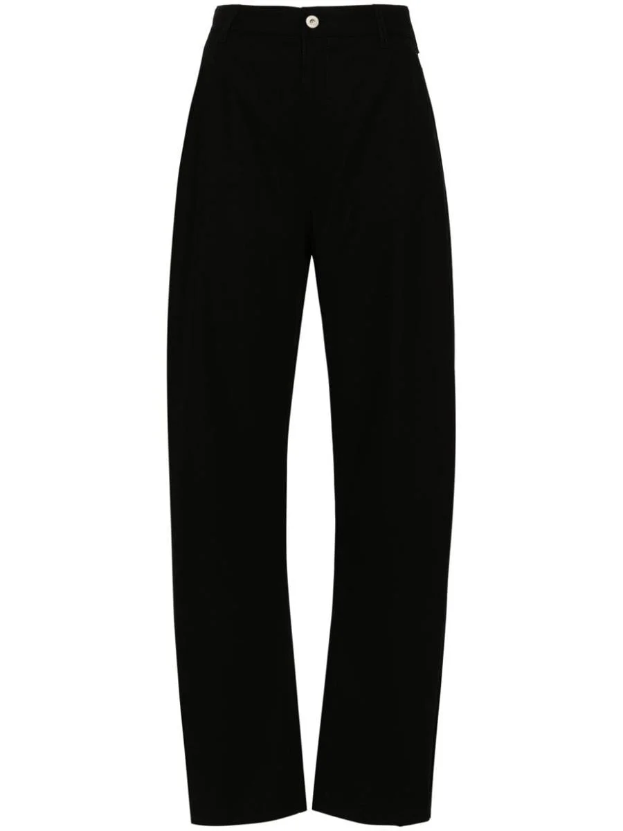black cotton twill weave logo patch to the rear front button and zip fastening belt loops two diagonal pockets to the sides two rear patch pockets wide leg This piece fits true to size. We recommend you get your regular size Model is 1,75m / 5ft 8in wearing size 36 (FR) Gender: Women Material: COTTON 100% Color: Black Made in: IT Product ID: S359Y04XEU1100 *Import tax/duty will be calculated at checkout (If applicable)