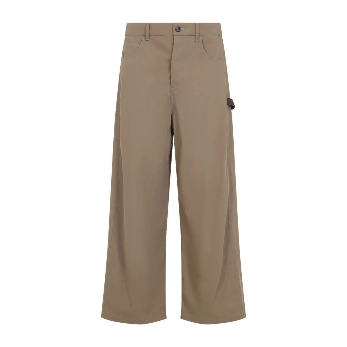 Loewe Carpenter Beige Cotton Pants. Beige cotton twill, front button and fly-zip fastening, mid-waist, 5-pockets design, brown leather hammer loop detail, curved leg, relaxed fit. Gender: Men Material: 95%COTTON 5%CALF SKIN Color: Beige Made in: Italy Product ID: H526Y04WHB_2140 *Import tax/duty will be calculated at checkout (If applicable)