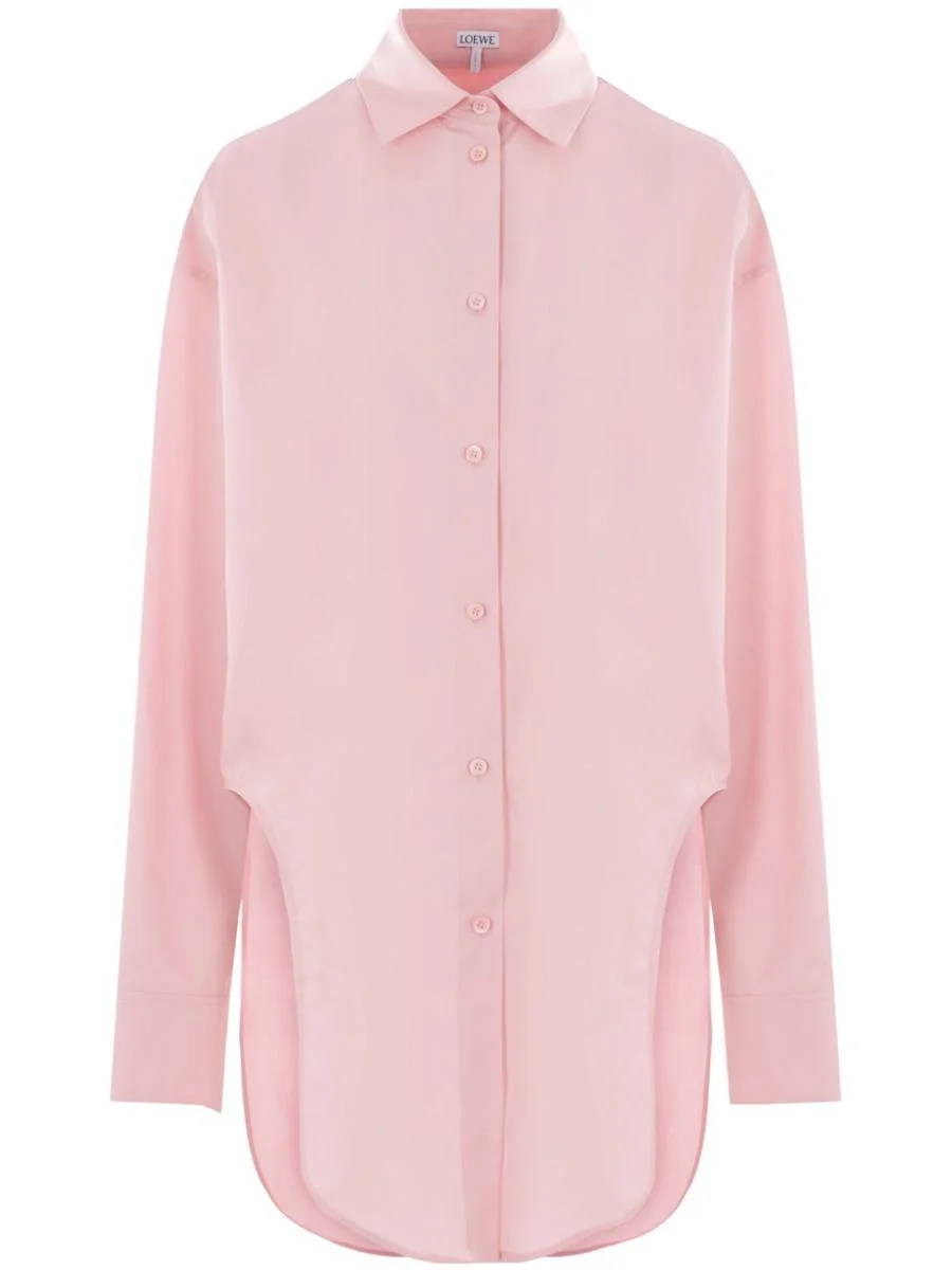 Loewe oversized shirt made of pink cotton poplin with Anagram embroidery on the back. Featuring a classic collar, front button closure, long sleeves with buttoned cuffs, and a rounded hem with curved side slits. Gender: Women Material: EXTERIOR: 3.0% POLYESTER-POLYESTER 97.0% ALGODON-COTTON Color: PINK Made in: IT Product ID: S359Y05XCV7140 *Import tax/duty will be calculated at checkout (If applicable)