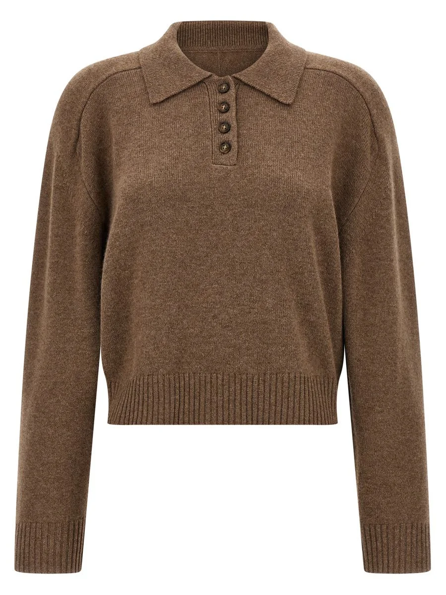 'Homere' polo shirt cashmere sweater with collar and buttons, tone-on-tone logo embroidery on the front, long cuffed sleeves Gender: Women Material: 100% CASHMERE Color: BROWN Made in: Imported Product ID: HOMERELDSTAUPEMELANGE *Import tax/duty will be calculated at checkout (If applicable)