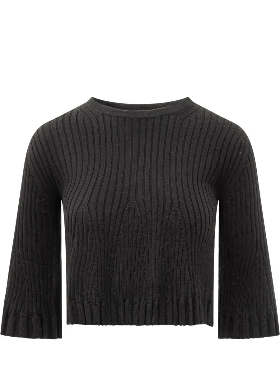 Silk and cotton blend top with long sleeves. Cropped. Crew neck. Ribbed hems. Stretch ribbed knit. Gender: Women Material: 55% SILK 40% COTTON 5% ELASTANE Color: Black Made in: MN Product ID: AMMI BLACK *Import tax/duty will be calculated at checkout (If applicable)