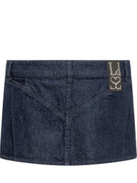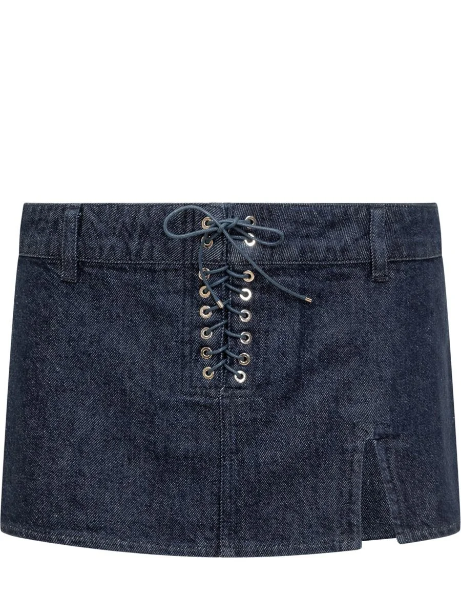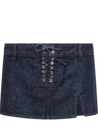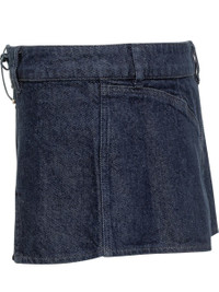 Blue denim mini skirt. Drawstring closure at front. Belt loops. Mini slit at front. Gender: Women Material: 100% COTTON Color: BLUE Made in: MA Product ID: AW23SK005WDEN001 BLUE *Import tax/duty will be calculated at checkout (If applicable)