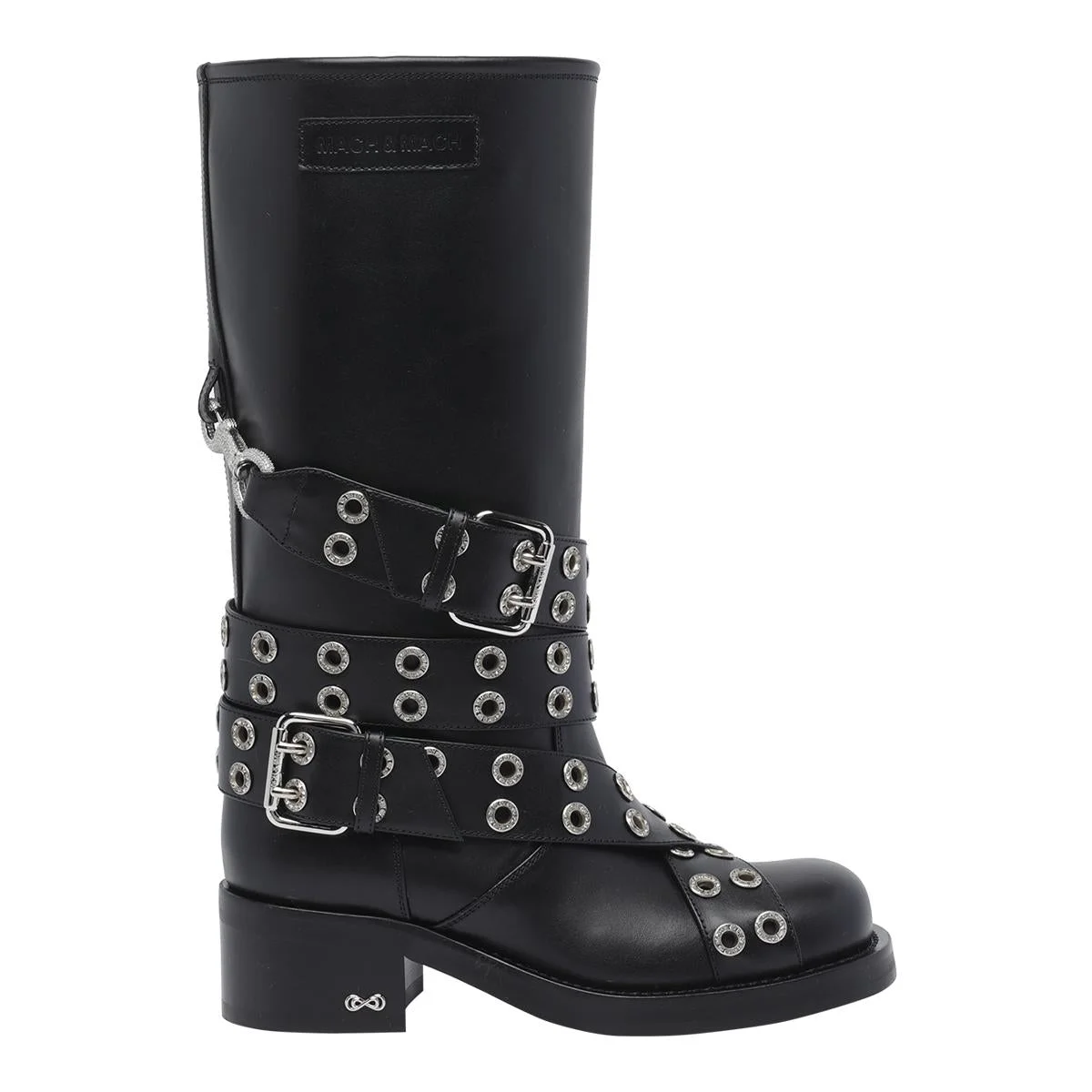 Mach&AmpMach Black Buckle Belt Vintage Leather Combat Boots, Round Toe, Leather Upperl, Buckles Detail, EU SIZE (IT) Gender: Women Material: 100% CALF LEATHER/RUBBER SOLE Color: Black Made in: Italy Product ID: S0977BLK *Import tax/duty will be calculated at checkout (If applicable)