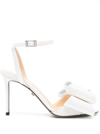 white satin weave oversize bow detail crystal embellishment logo-engraved buckle logo at the sole open toe buckle-fastening ankle strap branded leather insole high stiletto heel leather outsole This piece comes complete with a protective dust bag. Heel 3,7 in / 9,5 cm Gender: Women Material: LINING: CALF LEATHER 100% OUTER: FABRIC 100% SOLE: CALF LEATHER 100% Color: WHITE Made in: IT Product ID: R24-S0454-CRP-011SATINWHITE *Import tax/duty will be calculated at checkout (If applicable)
