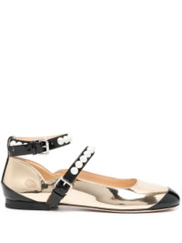 black/gold-tone calf leather patent finish two-tone design buckle-fastening ankle strap stud detailing round toe branded leather insole flat leather sole rubber outsole Heel 0,4 in / 1 cm Gender: Women Material: CALF LEATHER 100% Color: Gold Made in: IT Product ID: S0831010SPEC14 *Import tax/duty will be calculated at checkout (If applicable)