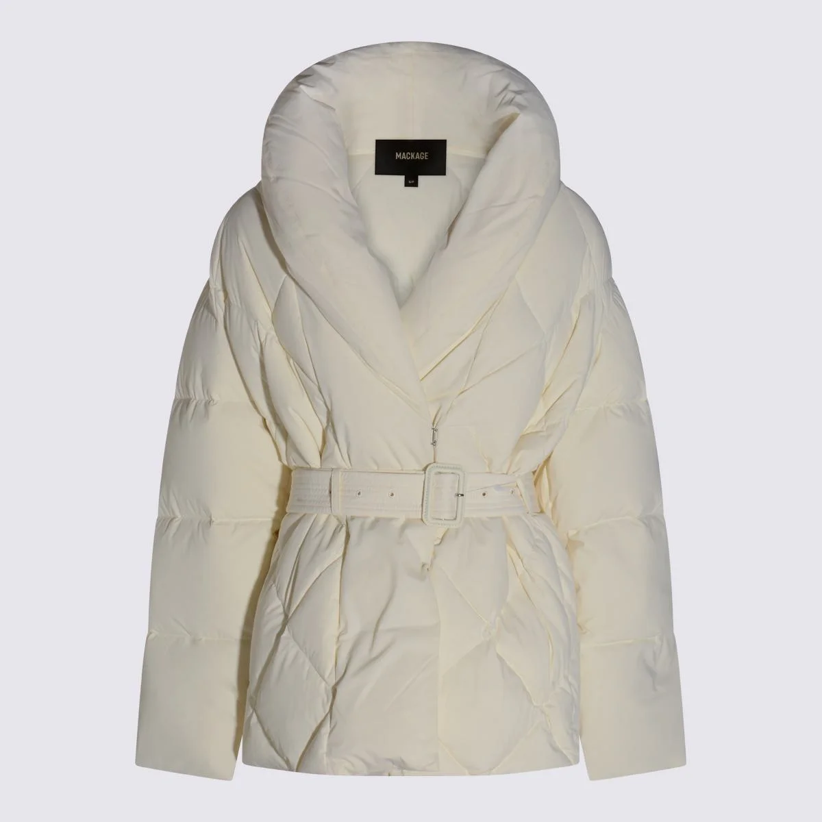 Cream down jacket from Mackage featuring shawl collar, long sleeves, padded, frontal closure, belt waist and regular vestibility. Size Type: AMERICA Gender: Women Material: 100%LEATHER Color: WHITE Made in: Imported Product ID: OLIVEC0253 *Import tax/duty will be calculated at checkout (If applicable)