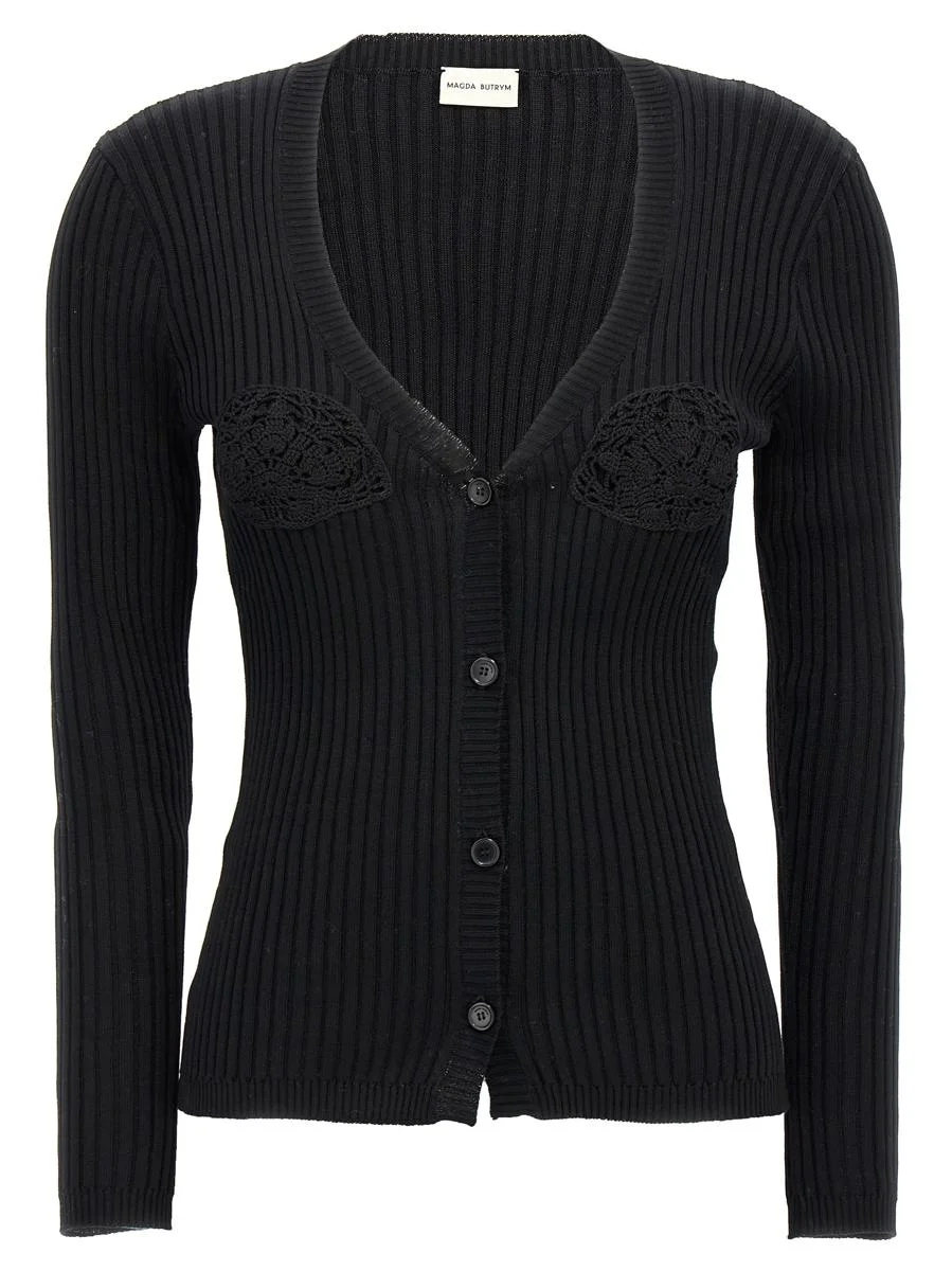 '08' ribbed cotton cardigan with front macrame detail, button closure, long sleeves Gender: Women Material: 100% COTTON Color: Black Made in: IT Product ID: 309724BLACK *Import tax/duty will be calculated at checkout (If applicable)
