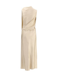 MAGDA BUTRYM'S SATINY LONG DRESS IS A SOPHISTICATED AND FEMININE DESIGN FEATURING A HALTER NECKLINE AND SLEEVELESS LINE THAT ENHANCES THE SHOULDERS. THE SIDE DRAPE AND MARKED WAIST ENHANCE THE SILHOUETTE, WHILE THE SIDE ZIPPER ENSURES A DISCREET CLOSURE. MADE OF SATIN FABRIC, IT GIVES THE LOOK A FLUID AND TIMELESS ELEGANCE. RTW FR Gender: Women Material: SILK | ELASTANE Color: Beige Made in: Poland Product ID: 140725_BEIGE *Import tax/duty will be calculated at checkout (If applicable)