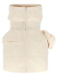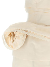 Strapless mini dress with lace-trimmed peplum in cream