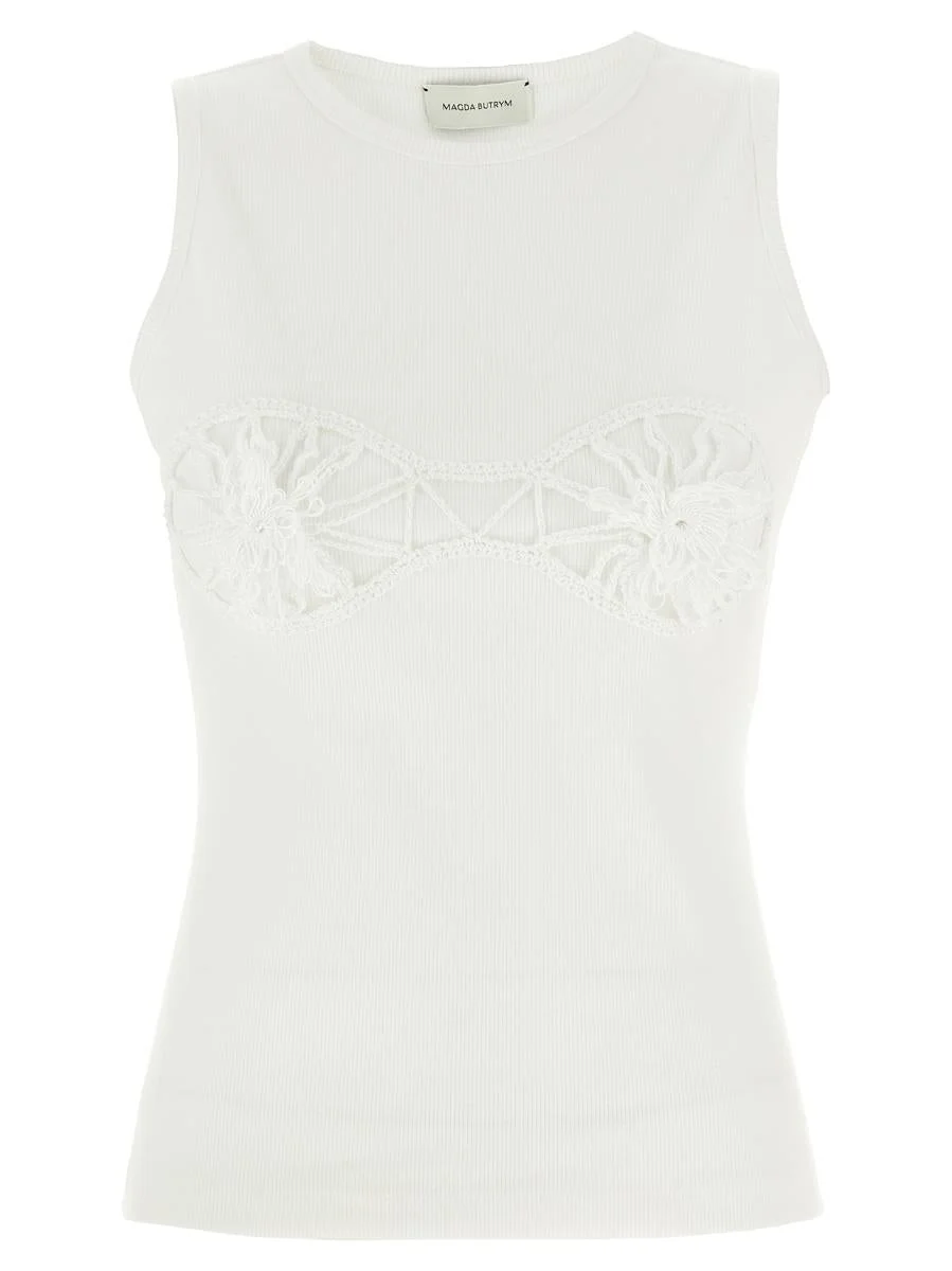 Ribbed stretch cotton top with crew neck, tone-on-tone bras front detail, sleeveless Gender: Women Material: 100% COTTON Color: WHITE Made in: PL Product ID: 145524WHITE *Import tax/duty will be calculated at checkout (If applicable)