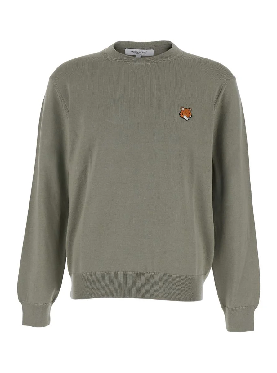Maison Kitsuné Green Crew Neck Sweater With Fox Patch On The Front In Wool Man