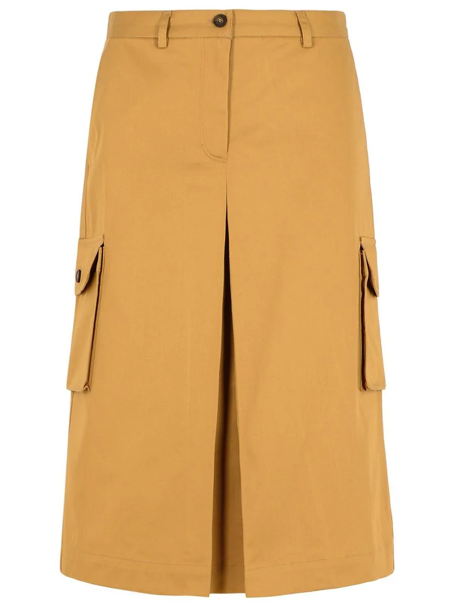 Belt loops, button and zipper closure concealed by flap, two side slit pockets, two envelope pockets with button, tone-on-tone embroidered logo lettering, tone-on-tone pleats, medium-long cut Gender: Women Material: 100% COTTON Color: Beige Made in: BG Product ID: NW01509WW0078P245 *Import tax/duty will be calculated at checkout (If applicable)