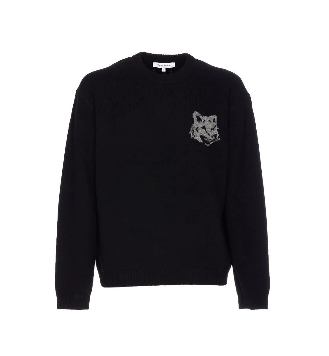 Maison Kitsune' Black Fox Head Intarsia Sweater, Crewneck, Long Sleeves, Embroidered Fox Logo On The Front, US SIZE Gender: Men Material: 100%WOOL Color: Black Made in: Imported Product ID: PM00816KM03290391 *Import tax/duty will be calculated at checkout (If applicable)