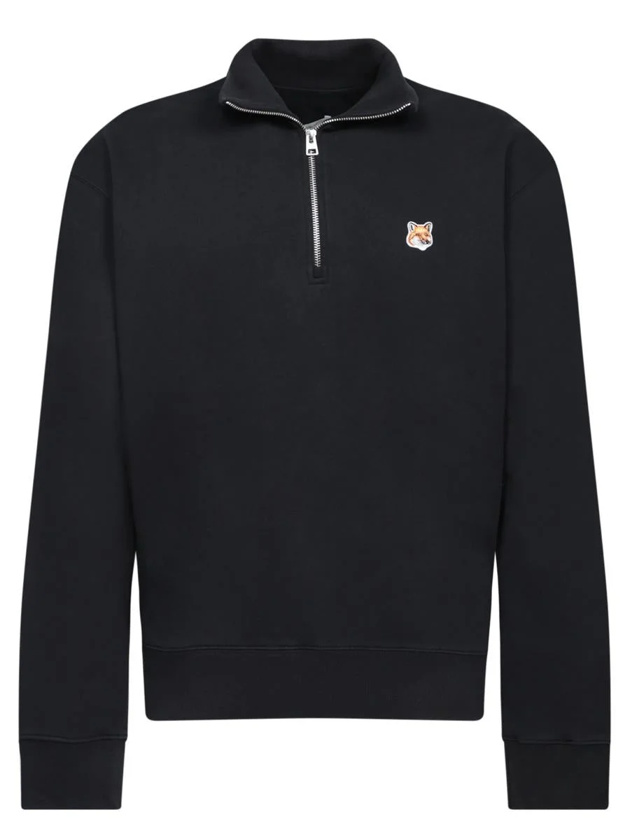 Black sweatshirt in soft fabric. Raised collar with half-zip closure. Fox logo detail on the front. This stylish black sweatshirt from Maison KitsunA© blends comfort and style with a touch of exclusivity. The raised collar and half-zip add an urban flair to the piece, while the distinctive Fox logo embellishes the design with timeless iconicity. Gender: Men Material: 100% COTTON Color: Black Made in: Imported Product ID: MM00314 KM0001 P199 *Import tax/duty will be calculated at checkout (If applicable)