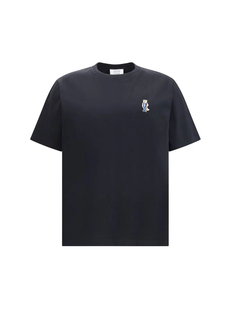 THE STANDING FOX T-SHIRT FROM MAISON KITSUNE COMBINES RELAXED COMFORT WITH A DISTINCTIVE DESIGN. WITH A COMFORTABLE FIT AND SHORT SLEEVES, IT IS PERFECT FOR EVERYDAY WEAR. THE RIBBED-FINISHED CREW NECK ENSURES A COMFORTABLE AND DURABLE FIT. ON THE CHEST, THE DRESSED FOX EMBROIDERED PATCH GIVES AN ICONIC AND ORIGINAL TOUCH, MAKING THIS GARMENT A MUST-HAVE FOR THOSE WHO LOVE A CASUAL YET SOPHISTICATED STYLE. STANDARD Gender: Men Material: COTTON Color: Black Made in: Portugal Product ID: PM00121KJ7025_P199 *Import tax/duty will be calculated at checkout (If applicable)