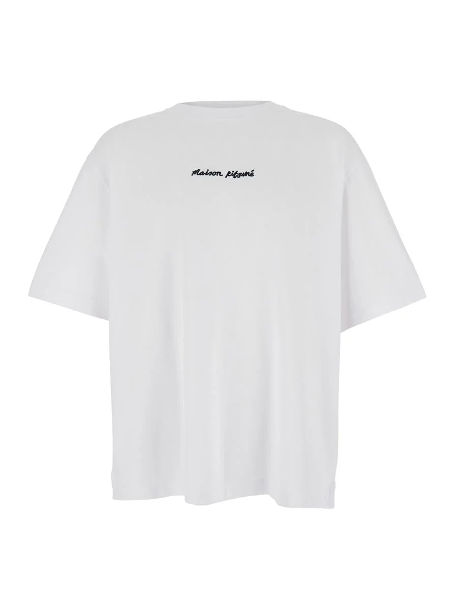 Maison Kitsune oversize t-shirt crafted from white cotton jersey, featuring a Maison Kitsune Handwriting embroidery on the chest. It is characterized by a crew neck, short sleeves and a straight hem with small side slits. Gender: Men Material: MONOENSEMBLE = 100% COTTON Color: WHITE Made in: PT Product ID: OM00122KJ0119P100 *Import tax/duty will be calculated at checkout (If applicable)