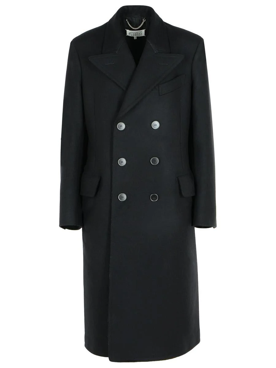 Collar with peak lapels, double-breasted button closure, front flap pockets, inside slit pockets, iconic white stitching on the back of the neck, button cuffs, back split hem, cotton blend and viscose lining Gender: Women Color: Black Made in: Imported Product ID: S50AA0158 M35585900 *Import tax/duty will be calculated at checkout (If applicable)
