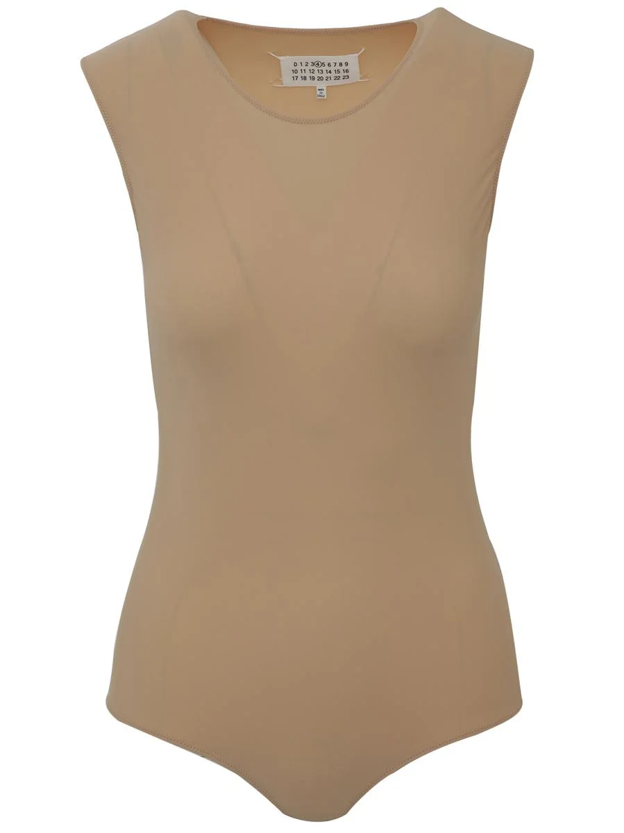 Light brown bodysuit from Maison Margiela featuring round neck, sleeveless design and a hook & eye fastening. Gender: WOMEN Material: 73%POLYAMIDE 23%POLYESTER 4%COTTON Color: BROWN Made in: IT Product ID: S51NA0065S20518121 *Import tax/duty will be calculated at checkout (If applicable)