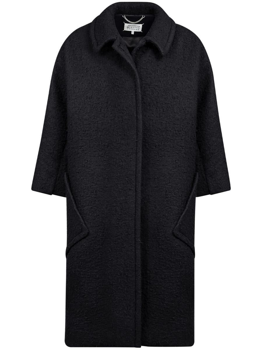 Highlights black wool-mohair blend boucle construction classic collar concealed front fastening long sleeves two side patch pockets mid-calf length straight hem   Made in Italy.     Composition Mohair 48% Gender: Women Material: TESSUTO PRIMARIO: 48% MOHAIR 40% WOOL 12% POLYAMIDE - LINING: 100% VISCOSE - LINING TASCHE: 100% COTTON Color: Black Made in: Imported Product ID: S51AA0353S53497 900 BLACK *Import tax/duty will be calculated at checkout (If applicable)