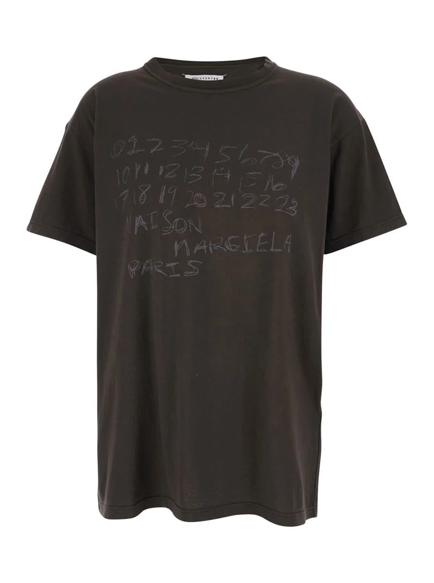 Maison Margiela Brown Crewneck T-Shirt With Maxi Logo Print On The Front In Cotton Woman