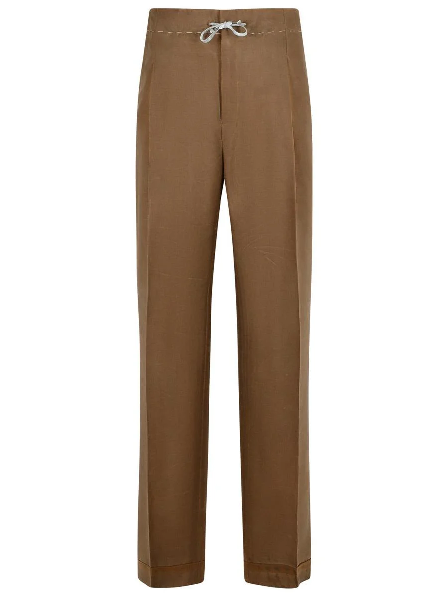Drawstring waistband, hook and button closure at the waist, zipper concealed by flap, structural front pleats, side welt pockets, back welt pockets, one with button, iconic white stitching on the back, finished hem. Gender: Men Material: 60% MOHAIR, 40% WOOL Color: BROWN Made in: Italy Product ID: S50KA0685 M35301159 *Import tax/duty will be calculated at checkout (If applicable)