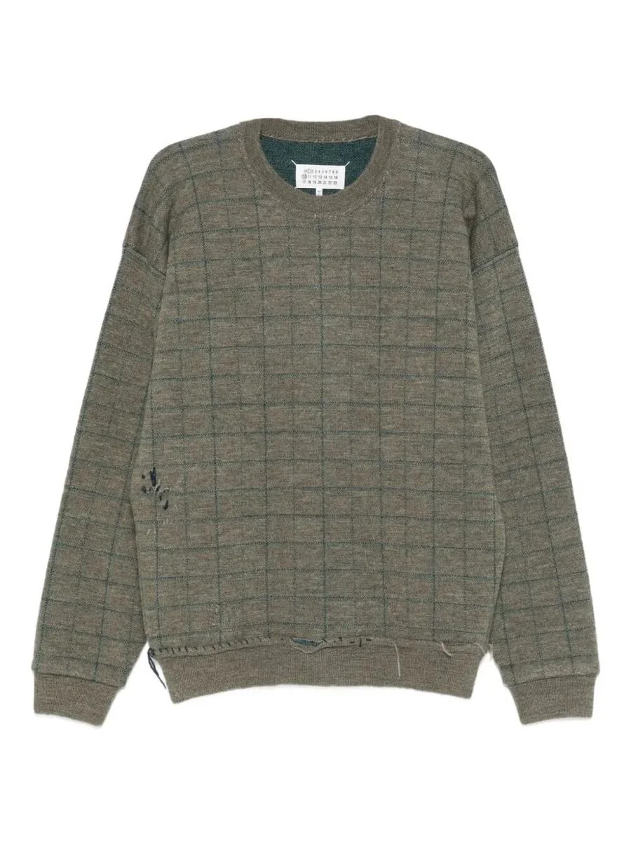 check-pattern distressed sweater