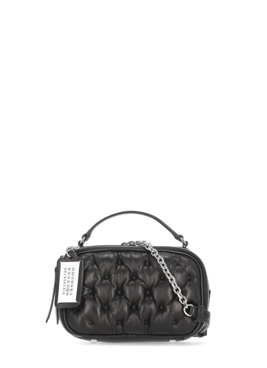 Handbag Black Quilted design Single top handle Removable and adjustable shoulder strap Double slider zip closure Logo tag Single compartment Internal card slot Internal logo Leather Dimensions: 12.5x5.5x19 cm Gender: Women Material: 100% SHEEP LEATHER Color: Black Made in: IT Product ID: SB1WB0008P6434T8013 *Import tax/duty will be calculated at checkout (If applicable)