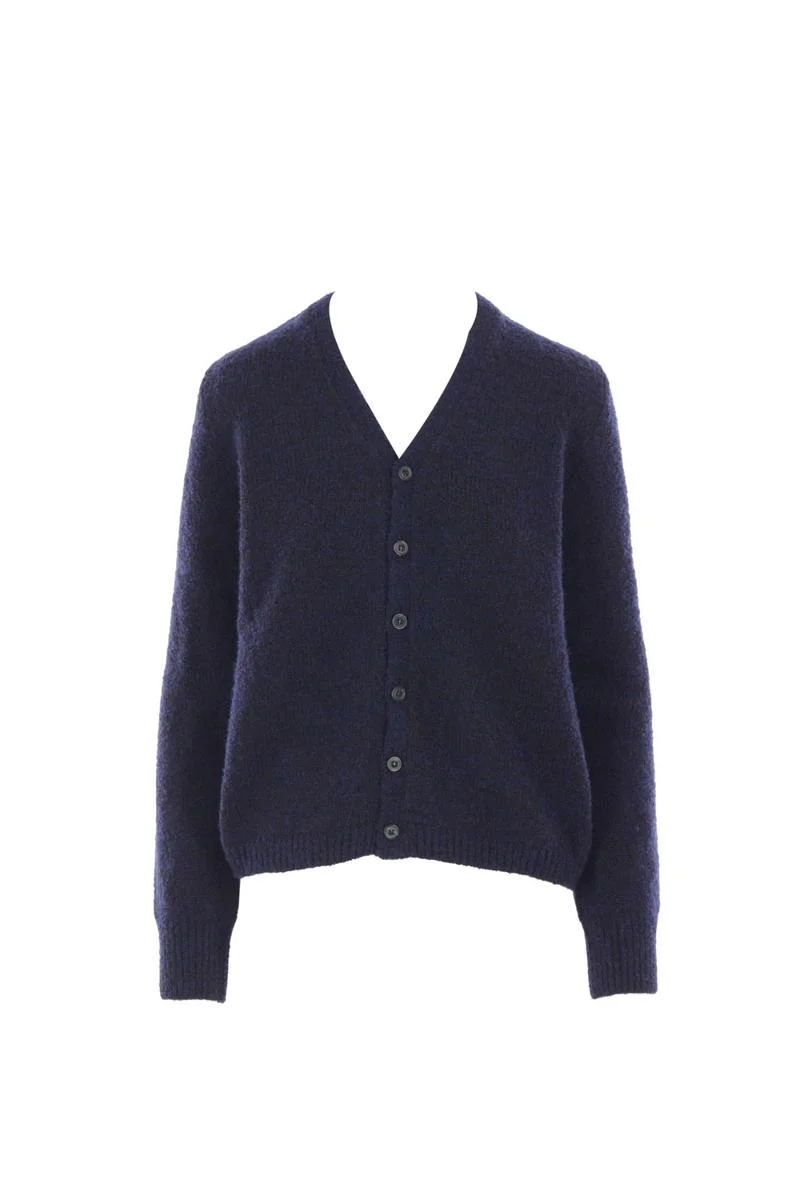 Maison Margiela cardigan made of blue wool-blend knit with a brushed finish and gradient dye effect. Features a V-neckline, button closure, long sleeves, and ribbed trims. The design is completed by the Maison’s signature four stitches on the back. Gender: Women Material: 90% WOOL 10% POLYAMIDE Color: BLUE Made in: Romania Product ID: S51HP0023M13154002F *Import tax/duty will be calculated at checkout (If applicable)