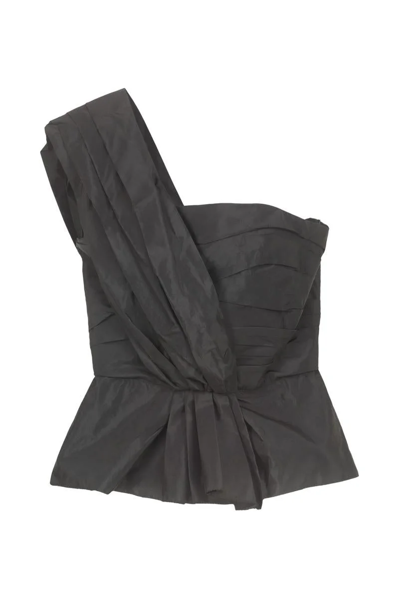 Maison Margiela top in light taffeta, draped on the shoulders and tight at the waist, features a deconstructed shape, raw cut edges. Gender: Women Material: POLYESTER | 75% POLYESTER Color: Black Made in: Italy Product ID: S51NC0629M35350 *Import tax/duty will be calculated at checkout (If applicable)