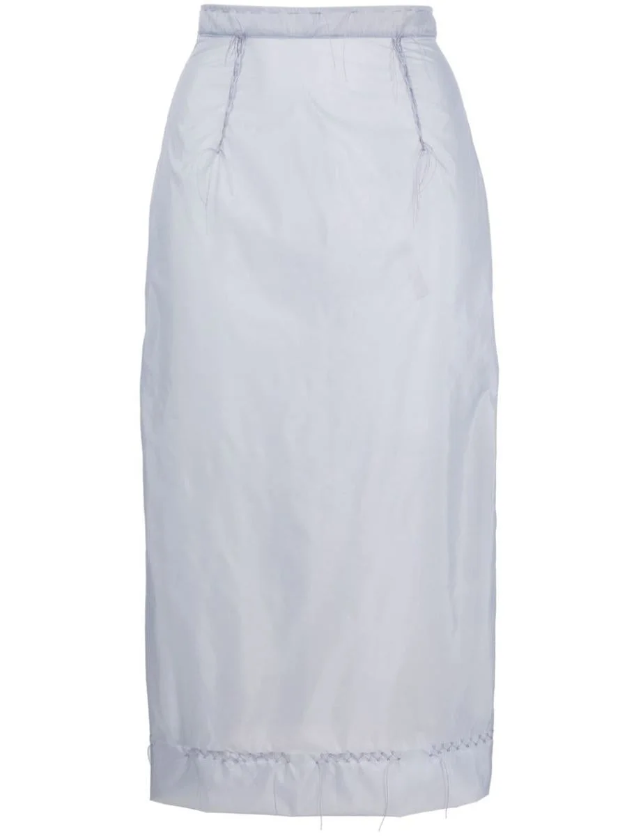 light blue chiffon semi-sheer construction signature four-stitch logo exposed-seam detailing high-waisted rear zip fastening rear slit straight hem below-knee length This piece fits true to size. We recommend you get your regular size Model is 1,75m / 5ft 8in wearing size 40 (IT) Gender: Women Material: POLYAMIDE 100% Color: CLEAR BLUE Made in: IT Product ID: S29ME0013S54847464 *Import tax/duty will be calculated at checkout (If applicable)