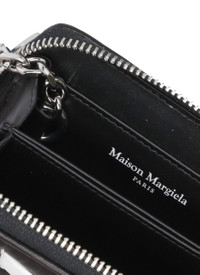 - Black Maison Margiela pebbled leather wallet for woman - Contrasting color iconic numerical label - Zip fastening - One internal zip pocket HEIGHT= 8 cm LENGTH= 11 cm DEPTH= 2 cm Gender: Women Material: 100% OVINE LEATHER LINING: 100% VISCOSE Color: Black Made in: Italy Product ID: SA1VX0018P6434T8013 *Import tax/duty will be calculated at checkout (If applicable)