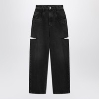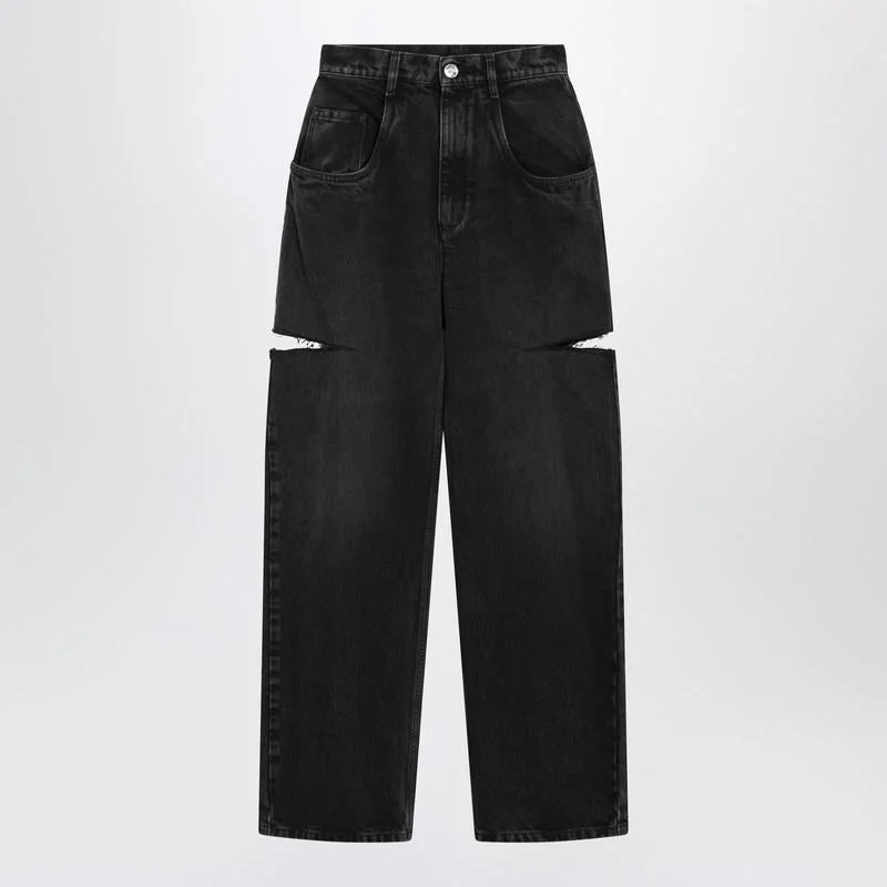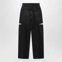 Black washed cotton denim jeans by Maison Margiela, featuring zip and button front closure, high waist with belt loops, five classic pockets, side distressing, and Four Stitches logo at the back. Gender: Women Material: 100% Cotton Color: Black Made in: Italy Product ID: S51LA0051S30743/R_MARGI-965 *Import tax/duty will be calculated at checkout (If applicable)
