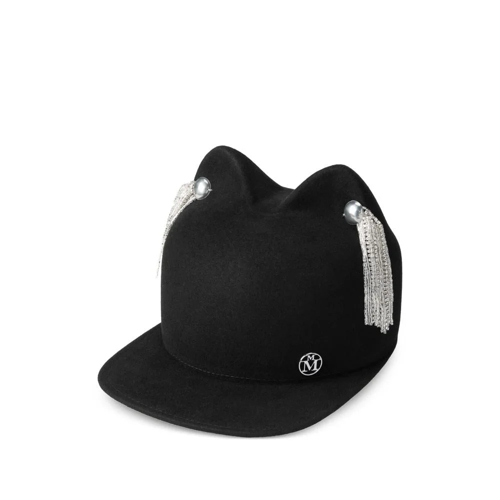Black cat ear design silver-tone beaded tassels logo detail flat peak Gender: Women Material: WOOL FELT: 100.0% Color: Black Made in: Imported Product ID: 1027086001 TASSLE BLACK *Import tax/duty will be calculated at checkout (If applicable)