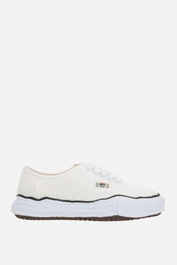 Maison Mihara Yasuhiro's low-top sneakers crafted in white canvas. Featuring lace-up closure, a round-toe silhouette, fabric lining and irregular rubber sole. The design is completed by the iconic MMY label on tongue. Gender: Men Material: UPPER:COTTON100% SOLE:RUBBER100% Color: WHITE Made in: Imported Product ID: A02FW704WHITE *Import tax/duty will be calculated at checkout (If applicable)