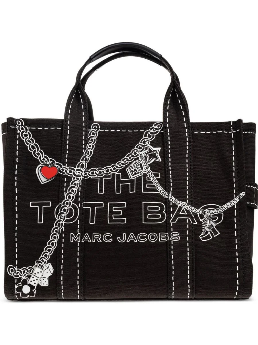 black chain print logo print top handles contrast stitching detachable strap DEPTH: 15.011 Centimetres HEIGHT: 25.502 Centimetres WIDTH: 32.995 Centimetres Gender: Women Material: 100% COTTON Color: Black Made in: Imported Product ID: 2F5HTT033H02002 *Import tax/duty will be calculated at checkout (If applicable)