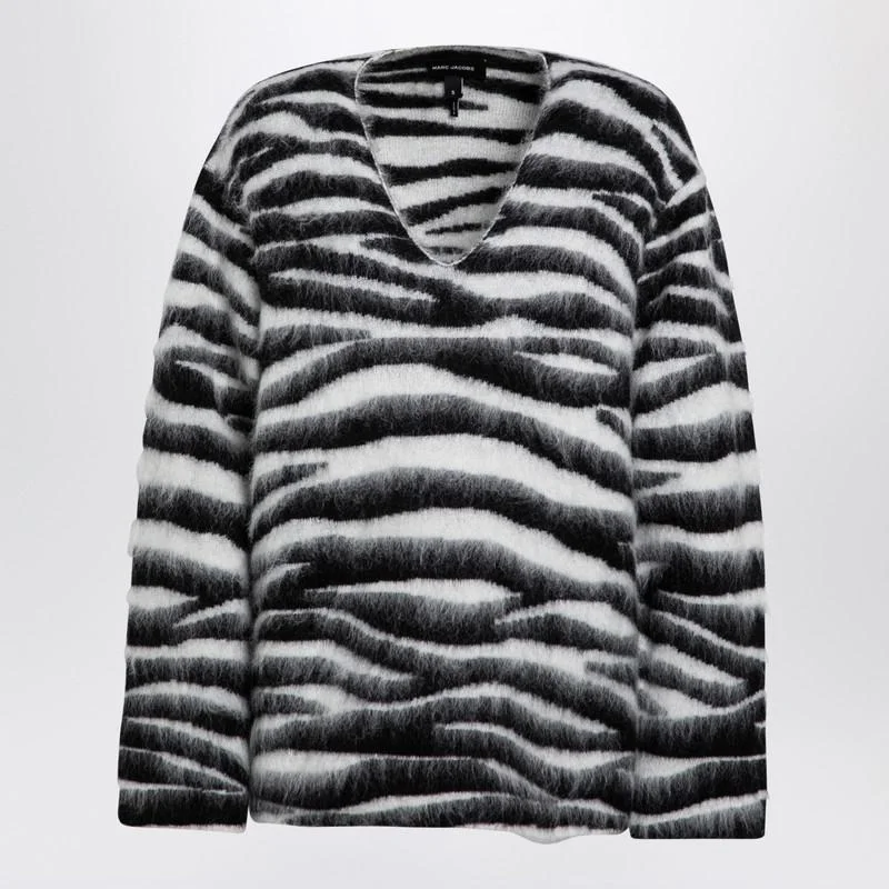 Zebra-patterned wool-blend jumper by Marc Jacobs, features long sleeves and a V-neck. Gender: Women Material: 57% Wool - 30% Mohair - 12% Nylon - 1% Elastane Color: Black Made in: IMPORTED Product ID: 2F4RTP030K30WO/P_MARC-005 *Import tax/duty will be calculated at checkout (If applicable)