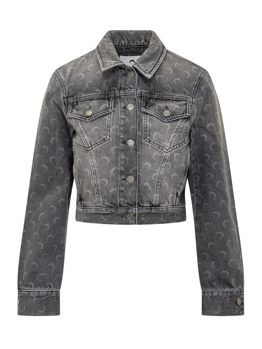 Marine Serre jacket in gray denim with all-over crescent print. Short model with chest pockets and metal button closure. Gender: Women Material: 100% COTTON Color: Black Made in: Imported Product ID: WJA041BCDEN0006 GR90 *Import tax/duty will be calculated at checkout (If applicable)