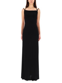 92% VISCOSE 8% ELASTANE THE MODEL IS 180 CM TALL AND WEARS SIZE S SIZE: S/M/L Gender: Women Material: 92% VISCOSE 8% ELASTANE Color: Black Made in: Italy Product ID: WDR335A_CJER0022BK99 *Import tax/duty will be calculated at checkout (If applicable)