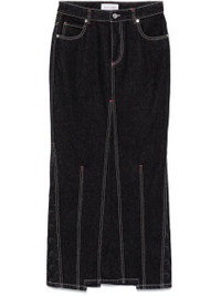 black organic cotton denim panelled design crescent moon print front button and zip fastening belt loops contrast stitching classic five pockets logo patch to the rear Crescent Moon embroidery rear slit asymmetric hem long length This item is made from at least 50% organic materials. Learn more about what makes a product Conscious on our Conscious Criteria page This piece fits true to size. We recommend you get your regular size Model is 1,75m / 5ft 8in wearing size 36 (FR) Gender: Women Material: COTTON 100% Color: Black Made in: IT Product ID: WSK074ARDEN0001BK99 *Import tax/duty will be calculated at checkout (If applicable)