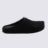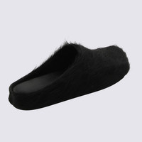 Black leather fussbett mules sandals from Marni featuring mules line, round toe, branded insole and rubber sole. Size Type: MAN SHOES EN Gender: Men Material: UPPER: 100% CALF HAIR - INSIDE: 100% CALF LEATHER - SOLE: 100% RUBBER Color: Black Made in: IT Product ID: SBMR000600P412200N99 *Import tax/duty will be calculated at checkout (If applicable)