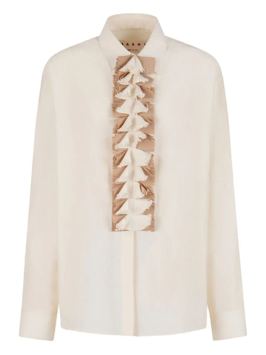 Blouse with ivory ruffles by Marni Gender: Women Material: .81% COTTON 19% POLYAMIDE Color: WHITE Made in: Italy Product ID: CAMA0639QS UTC526 00W03 *Import tax/duty will be calculated at checkout (If applicable)