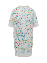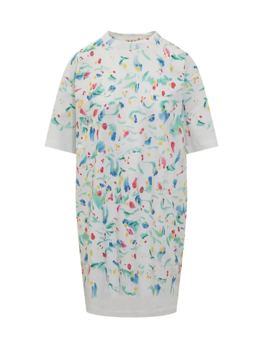 Short-sleeved midi dress. Crew neck. Ribbed hems. Floral all-over print. Maxi logo patch on the back. Gender: Women Material: 100% COTTON Color: WHITE Made in: IT Product ID: ABJE1203PXUSS010 SPW01 *Import tax/duty will be calculated at checkout (If applicable)