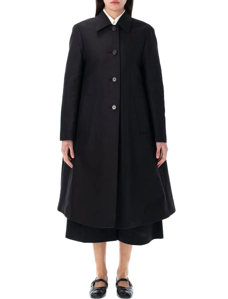 Duster coat by Marni. Featuring: Cotton woven Single-breasted Classic collar Button closure Front pockets Buttoned cuffs A-line design Model is 1,70 and wears size 40 Gender: Women Material: 100% COTTON Color: Black Made in: IT Product ID: 25PSPMA0235S0TCX28#00N99 *Import tax/duty will be calculated at checkout (If applicable)